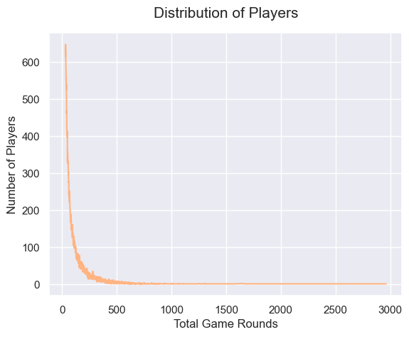 이제 A/B 테스트 결과의 신뢰성을 높이기 위한 데이터 전처리를 위해 총 게임 라운드 수에 따른 플레이어 수를 시각화해 보겠습니다.