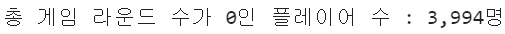 print(f"총 게임 라운드 수가 0인 플레이어 수 : {len(df[df["sum_gamerounds"] == 0]):,}명")