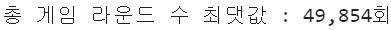 print(f"총 게임 라운드 수 최댓값 : {df["sum_gamerounds"].max():,}회")