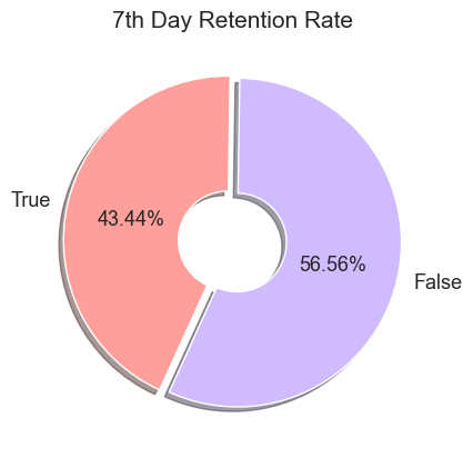 다음으로 게임 설치 후 7일 차 접속 여부에 따른 플레이어의 비율을 확인해 보겠습니다.
