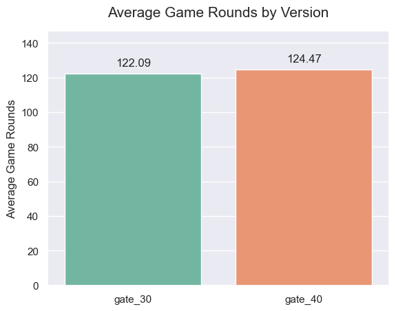 게이트 레벨이 30인 그룹(gate_30)은 50.06%, 게이트 레벨이 40인 그룹(gate_40)은 49.94%로 비슷한 비율로 나눈 것을 확인했습니다. 그렇다면 그룹에 따른 게임 라운드 수의 평균은 어떤지 살펴보겠습니다.